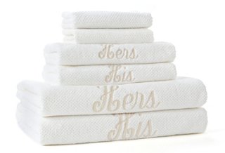 My mom once bought me green and white vintage pillow cases that had "His" and "Hers" embroidered on them. I washed them too many times and eventually they ended up falling apart, *sigh.* After seeing these cute white towels on One Kings Lane this morning it had me dreaming about vintage linens again. Both towels and pillow cases with embroidery on them. Back in the day lots of people had this sentiment on their towels, hand embroidered. Now you can replicate it with machine embroidery. They add a touch of vintage charm to any home.